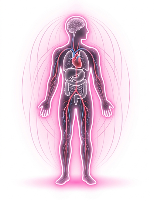 FAZA 3: Aktywacja pełnej mapy 41 stref refleksologicznych wywołuje efekt rezonansu w organach witalnych (serce, wątroba, nerki). System trwale „koduje” nowy wzorzec zdrowia w pamięci komórkowej, zapobiegając nawrotom dolegliwości i blokując procesy degeneracyjne.